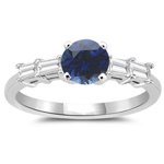 This tantalizing Engagement Ring showcases an AA quality Blue Sapphire, accentuated with four baguette-cut Diamonds prong set in 14K White Gold. Approximate Diamond Weight: 0.32 Carats. Approximate Gemstone Weight: 1.29 Carats. A spectacular way to add a touch of color. This product is sold by JEWELS-BY-SABRINA.,METAL:14K Gold,ACTUAL METAL:14K White Gold,RHODIUM:Yes,NUMBER OF DIAMONDS:4,SHAPE:Baguette,MINIMUM COLOR:H,MINIMUM CLARITY:SI,MINIMUM CARAT TOTAL WEIGHT:0.32,SETTING STYLE:Prong Setting,DIMENSIONS:3x2 mm,GEMSTONE:Blue Sapphire,SHAPE:Round,AVERAGE COLOR:Dark Blue,AVERAGE QUALITY:AA,MINIMUM CARAT TOTAL WEIGHT:1.29,GEMSTONE DIMENSIONS:6.5 mm,SETTING STYLE:Prong Setting,NUMBER OF STONES:1,COLOR:Blue- White,GENDER:Womens,PRODUCT TYPE:Engagement Ring,MATERIAL:Gemstone-White Diamond